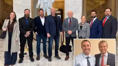 US Marine Stuart Scheller leads dozens of vets to rally support for Trump’s